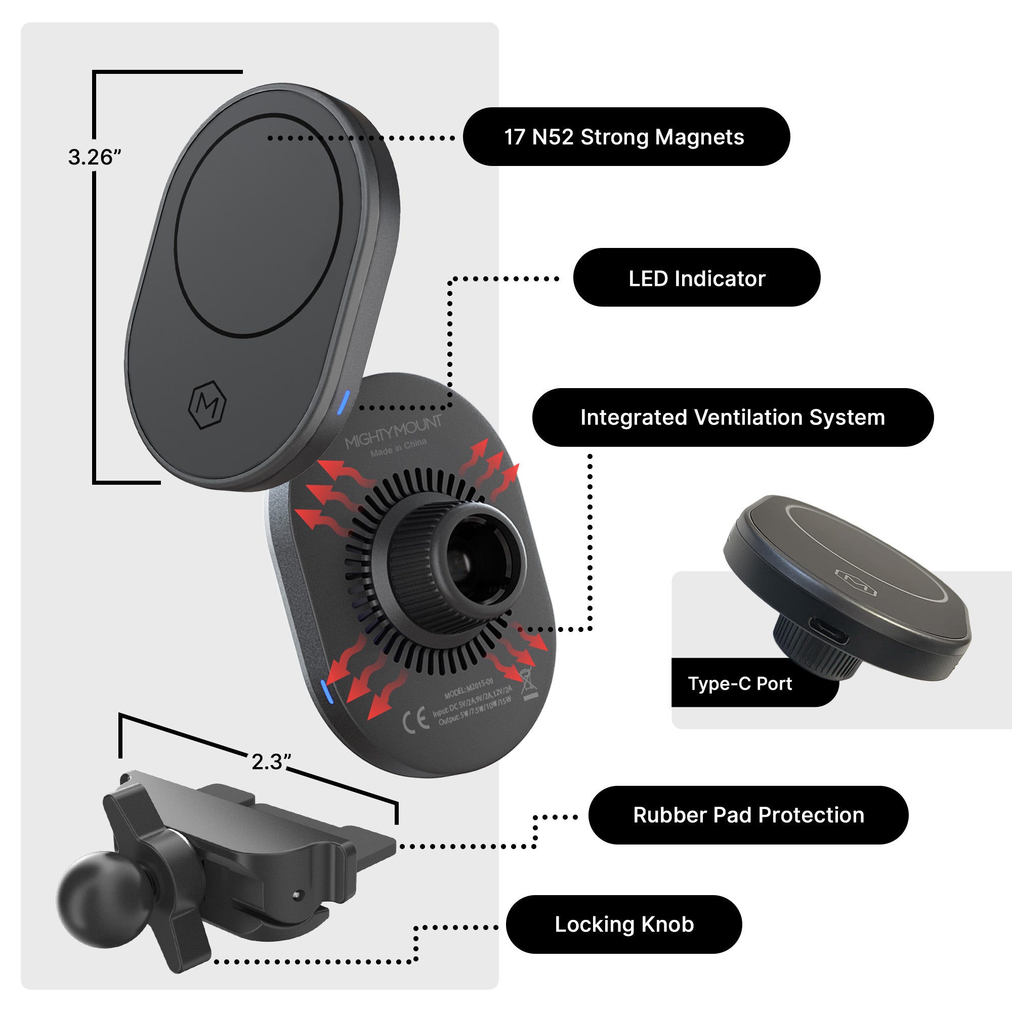 • One-hand mounting – Pull over, snap on, drive off